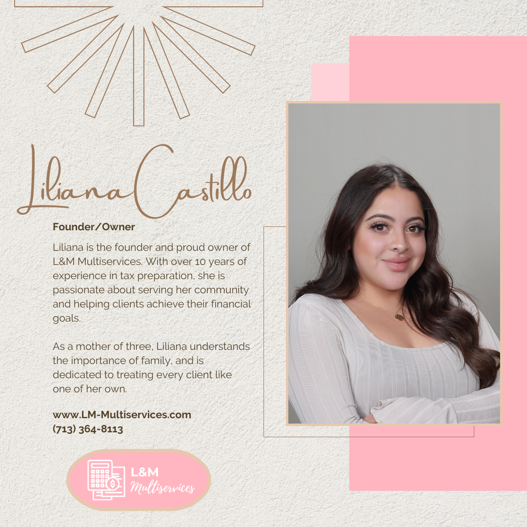 Hey there! I'm Liliana Castillo, and I'm thrilled to welcome you to L&M Multiservices, your friendly neighborhood tax hub!