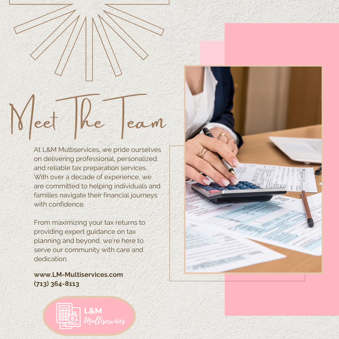 At L&M Multiservices, we're not your typical tax office. We're a family-oriented team dedicated to making tax season a breeze for you. Whether you're a small business owner or a hardworking individual, we're here to simplify the process and maximize your returns.